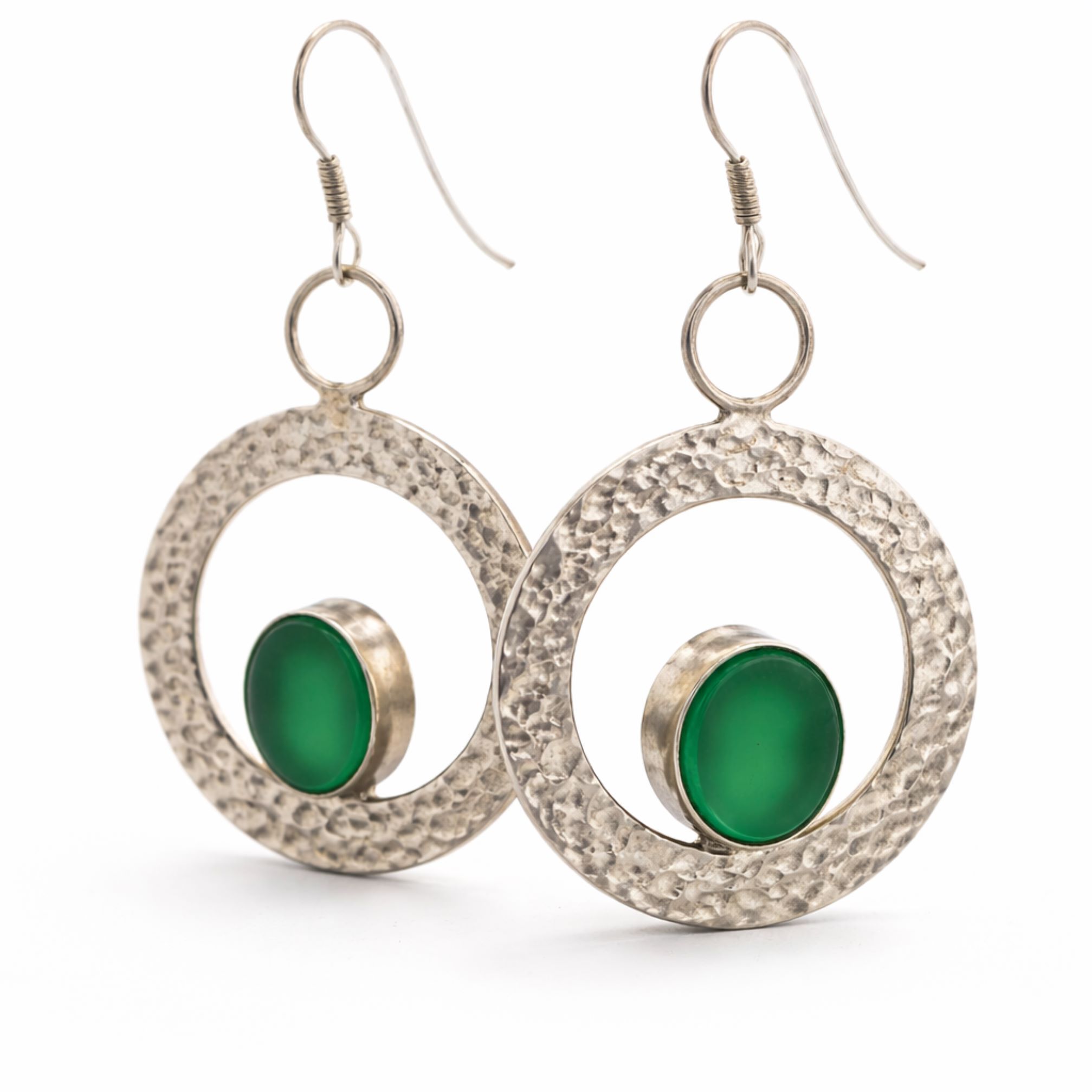 Gehämmerte Silberohrringe mit grünem Achat