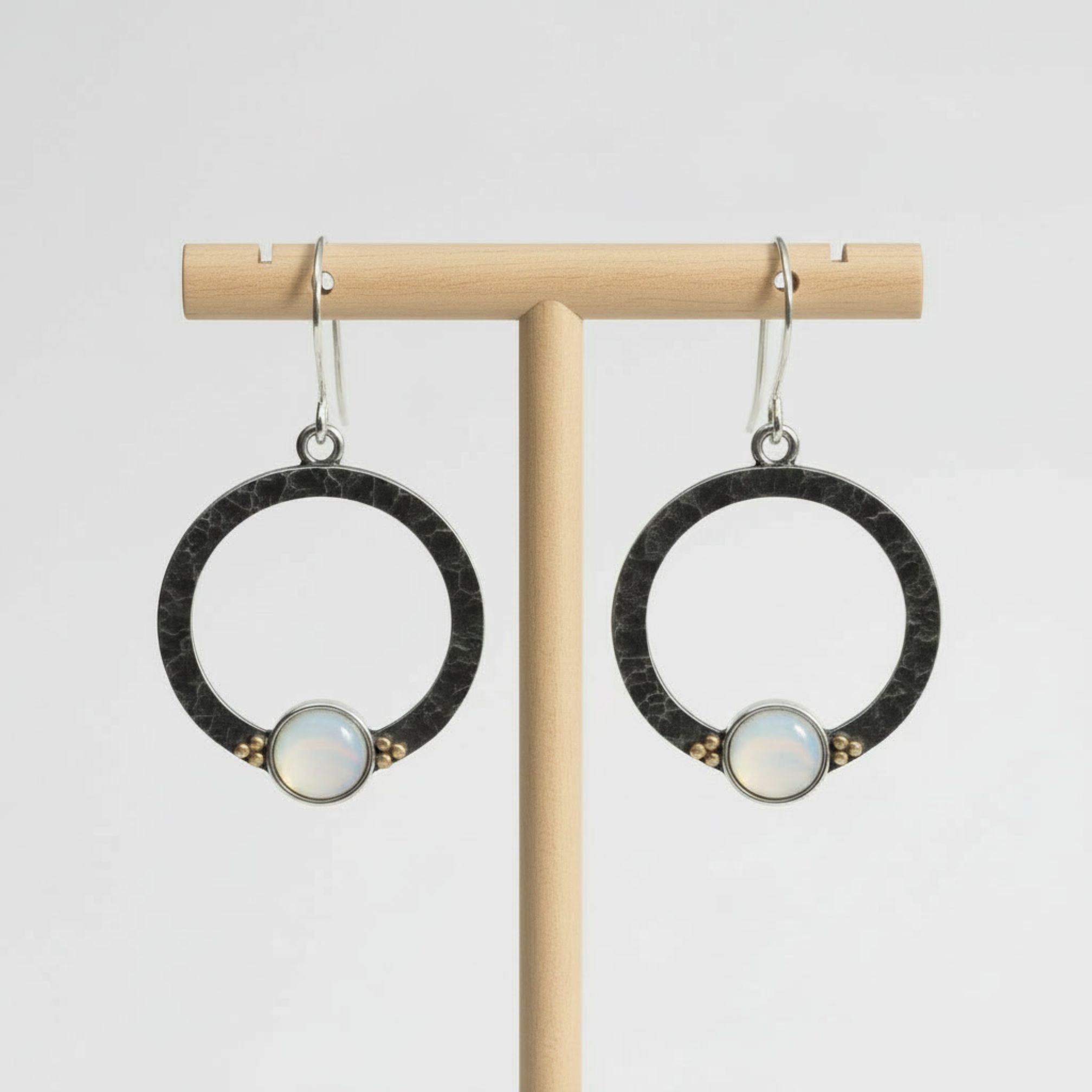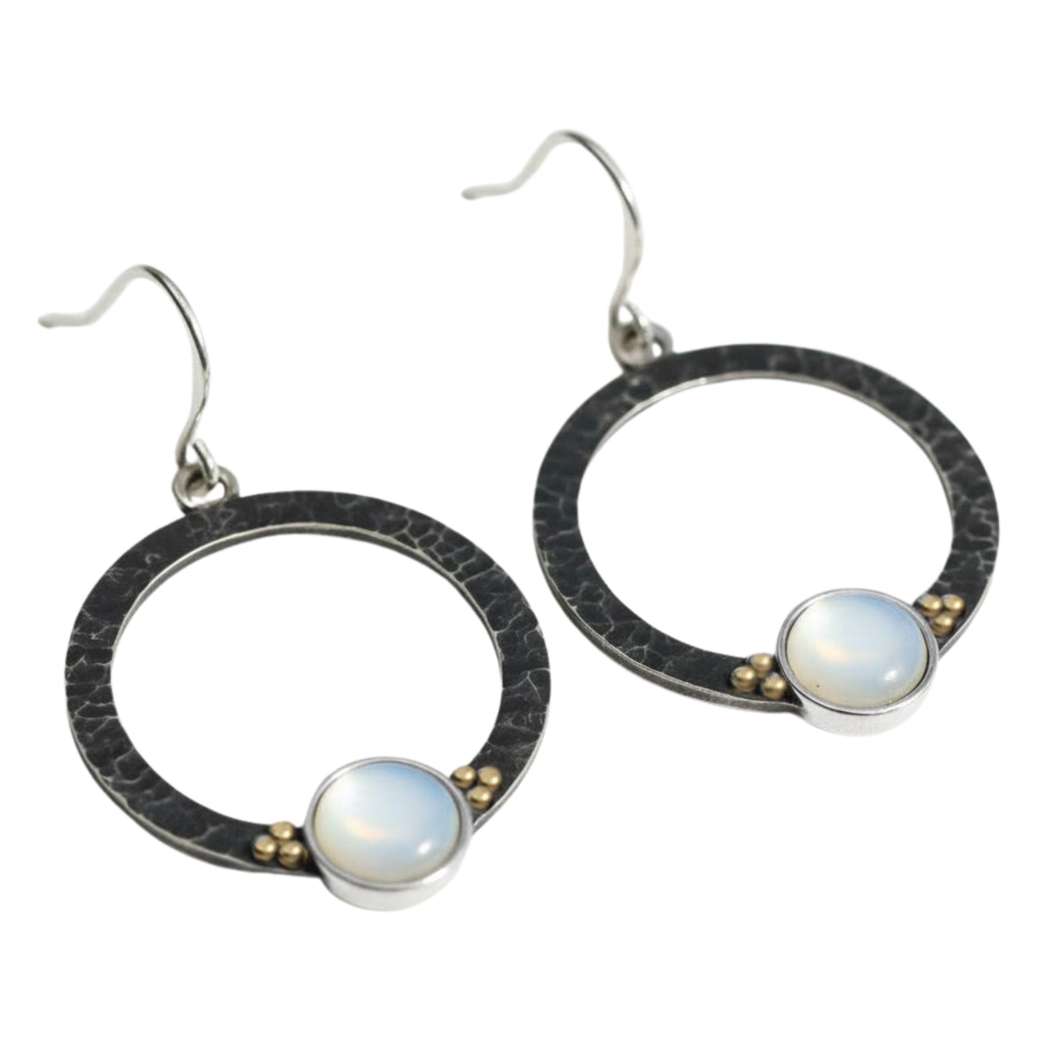 Perlmutt Ohrringe Silber gehämmert mit Goldpunkten