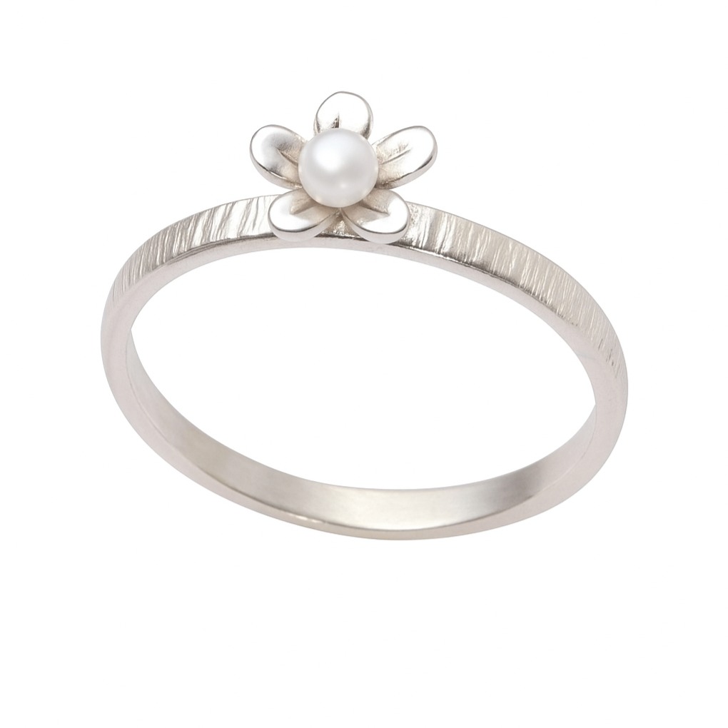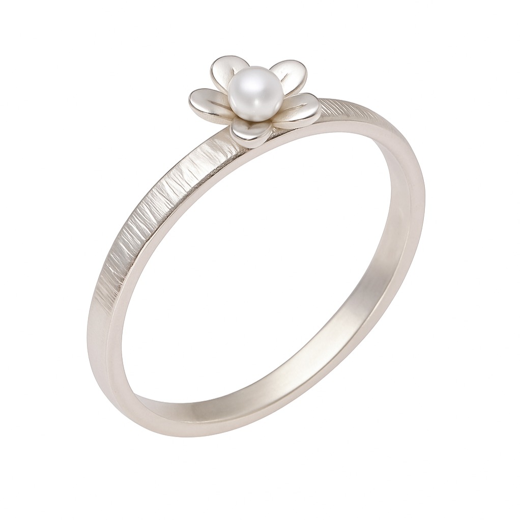Feiner Silberring mit kleiner Blüte und Perle
